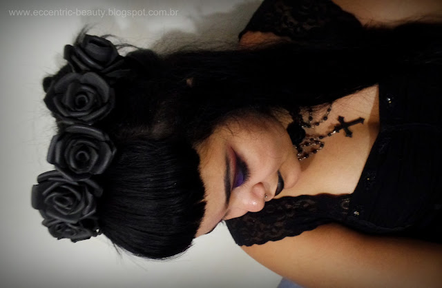 Pra fazer as essa coroa eu utilizei 10 rosas, num total de 2 folhas de e.v.a., cola quente, chapinha de cabelo, tesoura, palito de dente, um arco de cabelo daqueles simples de metal, fita de cetim e tinta guache pro acabamento.